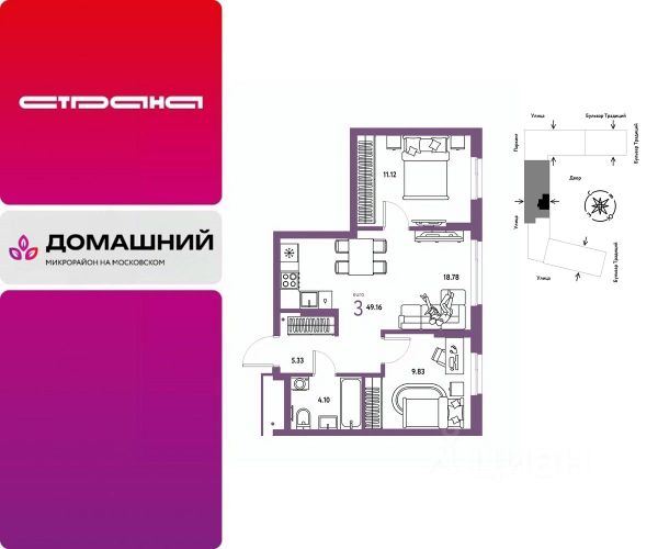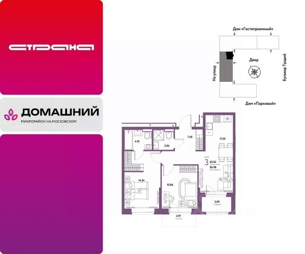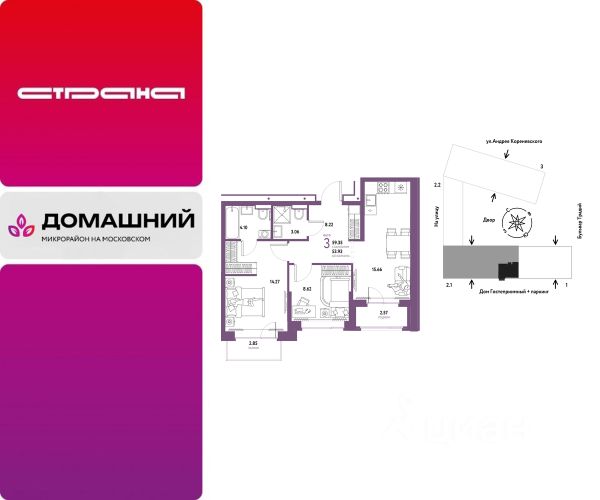 Объявление от застройщика Страна Девелопмент. Покупка квартиры защищена банком. Продается 3комнатная квартира на 13 этаже от застройщика Страна Девелопмент. Площадь квартиры 58,51 кв. м. О ПРOЕКТЕ Mикpорайон "Домaшний" — этo 6 очередей стpоитeльcтвa, 24 дома пеpемeннoй этажнoсти. Каждый дом уникальный. Внутри микрорайона появится огромный пешеходный бульвар — бульвар Традиций. Центром притяжения станут открытые пространства для отдыха жителей и гостей микрорайона, которые легко меняются под сезонные сценарии отдыха: новогодняя елка, ярмарки, кинопоказы и т.д. У каждого дома обустроен приватный двор с зонами для активного и спокойного отдыха. В активной зоне детские разновозрастные площадки с горками, песочницами и качелями, воркаут-зоны. В спокойной — скамейки, мини-амфитеатры, закрытые перголы. Уютной атмосферу сделает обильное озеленение и освещение "домашними" торшерами. ОТДЕЛКА Квартиры сдаются с предчистовой отделкой. Все грязные работы выполнены: произведена разводка электричества и отопления; выполнена стяжка пола; стены выровнены "под маяк". В квартире установлены розетки, выключатели и радиаторы. На входе — надежная стальная дверь. Вам остается только выбрать материалы и начать ремонт Доступна опция "Ремонт от застройщика". Стоимость можно включить в ипотеку. КУХНЯ С ТЕХНИКОЙ Теперь дополнительно к ремонту можно заказать кухню со встроенной техникой. Эргономику и функциональное наполнение разработали под каждую планировку. ПОЛНАЯ МЕБЛИРОВКА Больше не нужно тратить время даже на подбор, доставку и сборку мебели.Вы можете включить в стоимость квартиры с ремонтом полную меблировку. - Что входит в меблировку? - Кухня с техникой и сантехникой - Диван - Кровать - Шкаф в спальне - Шкаф в прихожей На консультации менеджер подскажет, какие акции действуют, и как получить одобрение по ипотеке с низкой ставкой. Более подробная информация по телефону. Застройщик ООО СЗ "Страна Запад". Проектные декларации на сайте наш.дом.рф.