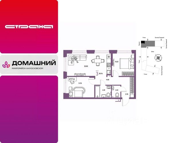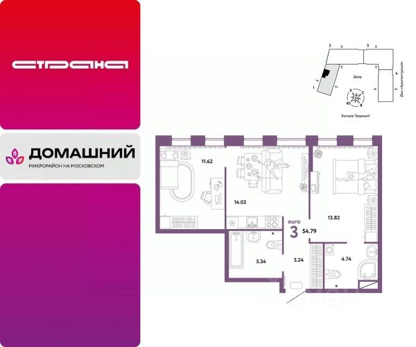 Новая квартира в ЖК "Домашний" напрямую от федеральной группы компаний "Страна Девелопмент". Финансовый партнер — банк "ДОМ.РФ". Продается 3комнатная квартира на 3 этаже от застройщика Страна Девелопмент. Площадь квартиры 60,2 кв. м. ЖК "ДОМАШНИЙ" Жилой комплекс "Домашний" это первый цифровой район в Сибири, где жители заходят в парадные по Face ID, автомобили заезжают в паркинг по сканированию номера, а лифт автоматически спускается на первый этаж при открытии домофона. Даже во дворах — USB-розетки и беседки с подогревом. ПРЕИМУЩЕСТВА -Школа, зеленый сквер и пешеходный бульвар прямо внутри квартала -Закрытые дворы у каждого дома для активного и спокойного отдыха -Охрана, видеонаблюдение 24/7 и доступ к камерам в мобильном приложении -Сквозные парадные с прозрачными входными группами, колясочными и велосипедными -Паркинг с въездом по считыванию номеров, системой контроля выбросов CO2, тележками для покупок и велопарковкой -Торговая галерея на первом этаже дома ОТДЕЛКА Квартиры сдаются с предчистовой отделкой: произведена разводка электричества и отопления, выполнена стяжка пола, стены выровнены "под маяк", установлены розетки, выключатели и радиаторы. ДИЗАЙНЕРСКАЯ ОТДЕЛКА При покупке квартиры в ЖК "Домашний" можно включить стоимость ремонта в ипотеку. Пять вариантов на выбор: Хлопковая нить, Серый шторм, Белый камень, Шалфей, Голубой вереск. СПОСОБЫ ПОКУПКИ Сотрудники "Страна Девелопмент" будут сопровождать вас на каждом этапе сделки, помогут получить одобрение по ипотеке или снизить ежемесячный платеж. - ипотека - материнский капитал -100% оплата наличными