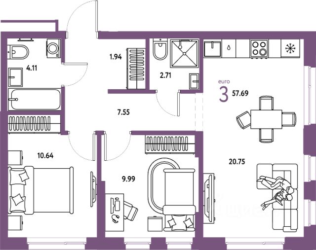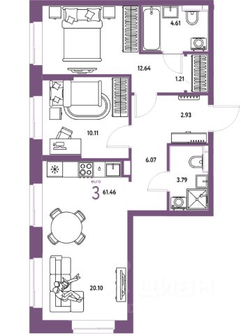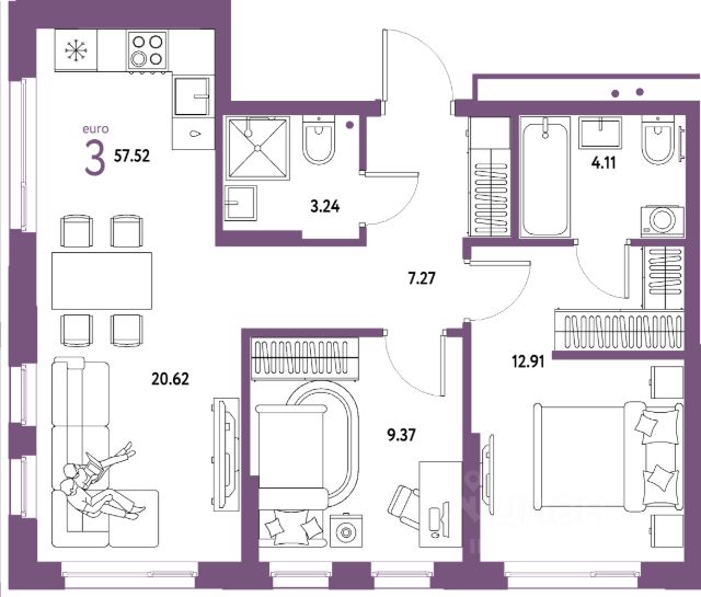 Продаётся 3-комнатная квартира в строящемся доме (Дом "Парковый" (ГП-13)), срок сдачи: I-кв. 2026, общей площадью 54.06 кв.м., на 9 этаже. Новый микрорайон "Домашний" от группы компаний "Страна Девелопмент" расположен в Калининском округе Тюмени, в районе аэропорта "Плеханово".
