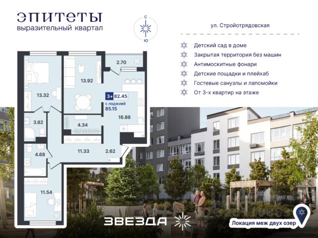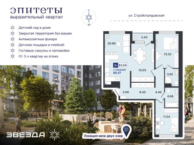 Выразительный квартал "Эпитеты" — сбалансированный проект, который сочетает атмосферу размеренной загородной жизни, насыщенную инфраструктуру и очарование природных локаций. ЖК комфорт-класса расположен на пересечении улиц Западносибирская и Стройотрядовская в окружении озер и зеленых массивов. Эклектичный стиль фасадов и соразмерная человеку архитектура станут украшением всего района.