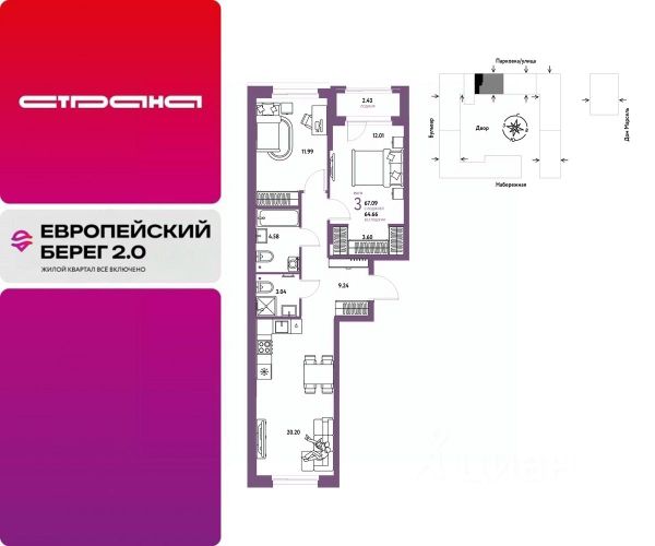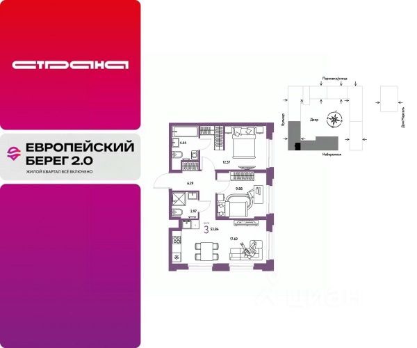 Объявление от застройщика Страна Девелопмент. Покупка квартиры защищена банком. Продается 3комнатная квартира на 5 этаже от застройщика Страна Девелопмент. Площадь квартиры 56,07 кв. м. Стоимость указана без учета акций. Европейский берег 2.0. — это продолжение легендарного жилого комплекса Европейский берег. Он включает все, что нужно для жизни, и даже больше. Этот квартал для тех, кто не готов тратить время на ненужное, жертвовать одним ради другого. Для тех, кто хочет получить все и сразу. Именно поэтому генеральная идея проекта — жилой квартал все включено. Все преимущества включены. Никаких исключений. ПРЕИМУЩЕСТВА Разнообразие планировок: от классических до квартир с мастер-спальней и террасами. Подземный паркинг с кладовыми, охраной и видеонаблюдением 24/7. Ремонт от застройщика: 5 вариантов на выбор. Закрытый двор с площадками и зонами отдыха: мост-акведук, тренажёры, лабиринты, гамаки и шезлонги. ОТДЕЛКА Базовая отделка или готовый ремонт от застройщика. В базовой отделке все черновые работы выполнены, подведены коммуникации, стены оштукатурены под маяк. В ремонт от застройщика входит 5 вариантов отделки, уже включено всё необходимое: от сантехники до кондиционера. СПОСОБЫ ПОКУПКИ Сотрудники "Страны Девелопмент" будут сопровождать вас на каждом этапе сделки, помогут получить одобрение по ипотеке или снизить ежемесячный платеж. - ипотека - материнский капитал - 100% оплата наличными - рассрочка - обмен — это выкуп вашей старой квартиры и зачисление полученных денежных средств в счет стоимости новой квартиры или в качестве первоначального взноса по ипотеке.