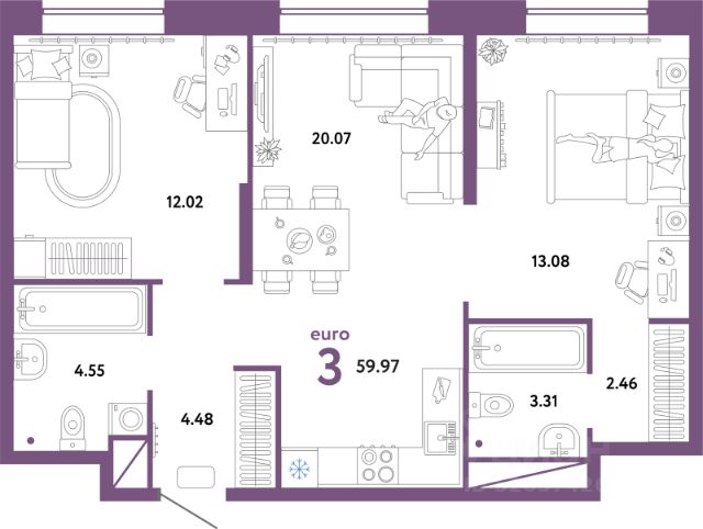 Продаётся 3-комнатная квартира в строящемся доме (ГП-1 (дом Монте-Карло)), срок сдачи: I-кв. 2026, общей площадью 58.78 кв.м., на 24 этаже. В жилом комплексе "Европейский берег" предусмотрено строительство отдельно стоящих, закрытых, надземных паркингов. Попасть к своему автомобилю Вы сможете прямо из подъезда, через теплый переход, не выходя при этом на улицу. Парковочное место уже включено в стоимость большинства квартир. В квартирах комплекса "Европейский берег" гостиная объединена с кухней, что позволяет создать комфортное пространство для семейного времяпрепровождения. Проектом предусмотрено большое количество 4 и 5 комнатных квартир, для того, чтобы у каждого была своя комната.