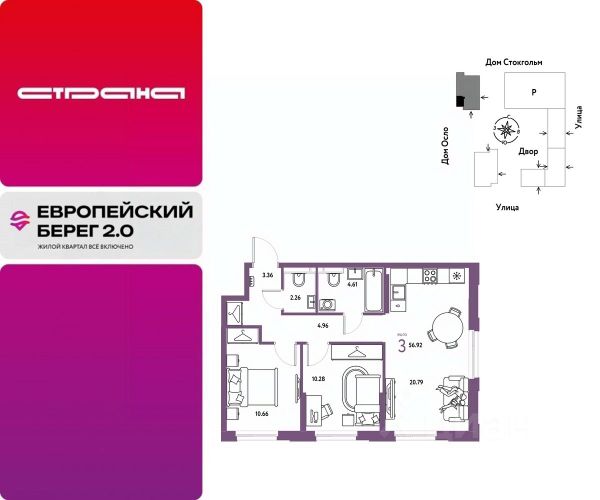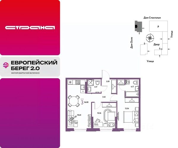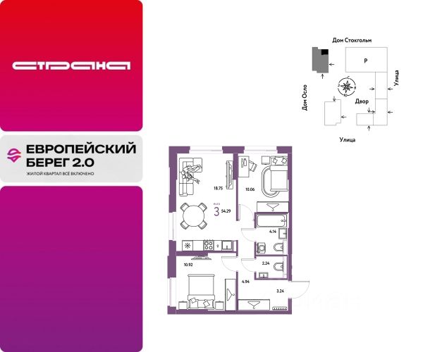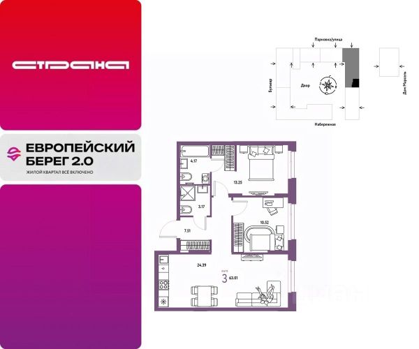 Объявление от застройщика Страна Девелопмент. Покупка квартиры защищена банком. Продается 3комнатная квартира на 11 этаже от застройщика Страна Девелопмент. Площадь квартиры 54,33 кв. м. Стоимость указана без учета акций. Европейский берег 2.0. — это продолжение легендарного жилого комплекса Европейский берег. Он включает все, что нужно для жизни, и даже больше. Этот квартал для тех, кто не готов тратить время на ненужное, жертвовать одним ради другого. Для тех, кто хочет получить все и сразу. Именно поэтому генеральная идея проекта — жилой квартал все включено. Все преимущества включены. Никаких исключений. ПРЕИМУЩЕСТВА Разнообразие планировок: от классических до квартир с мастер-спальней и террасами. Подземный паркинг с кладовыми, охраной и видеонаблюдением 24/7. Ремонт от застройщика: 5 вариантов на выбор. Закрытый двор с площадками и зонами отдыха: мост-акведук, тренажёры, лабиринты, гамаки и шезлонги. ОТДЕЛКА Базовая отделка или готовый ремонт от застройщика. В базовой отделке все черновые работы выполнены, подведены коммуникации, стены оштукатурены под маяк. В ремонт от застройщика входит 5 вариантов отделки, уже включено всё необходимое: от сантехники до кондиционера. СПОСОБЫ ПОКУПКИ Сотрудники "Страны Девелопмент" будут сопровождать вас на каждом этапе сделки, помогут получить одобрение по ипотеке или снизить ежемесячный платеж. - ипотека - материнский капитал - 100% оплата наличными - рассрочка - обмен — это выкуп вашей старой квартиры и зачисление полученных денежных средств в счет стоимости новой квартиры или в качестве первоначального взноса по ипотеке.