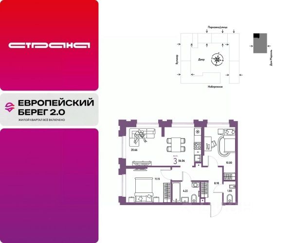 Объявление от застройщика Страна Девелопмент. Покупка квартиры защищена банком. Продается 3комнатная квартира на 3 этаже от застройщика Страна Девелопмент. Площадь квартиры 81,08 кв. м. Стоимость указана без учета акций. Европейский берег 2.0. — это продолжение легендарного жилого комплекса Европейский берег. Он включает все, что нужно для жизни, и даже больше. Этот квартал для тех, кто не готов тратить время на ненужное, жертвовать одним ради другого. Для тех, кто хочет получить все и сразу. Именно поэтому генеральная идея проекта — жилой квартал все включено. Все преимущества включены. Никаких исключений. ПРЕИМУЩЕСТВА Разнообразие планировок: от классических до квартир с мастер-спальней и террасами. Подземный паркинг с кладовыми, охраной и видеонаблюдением 24/7. Ремонт от застройщика: 5 вариантов на выбор. Закрытый двор с площадками и зонами отдыха: мост-акведук, тренажёры, лабиринты, гамаки и шезлонги. ОТДЕЛКА Базовая отделка или готовый ремонт от застройщика. В базовой отделке все черновые работы выполнены, подведены коммуникации, стены оштукатурены под маяк. В ремонт от застройщика входит 5 вариантов отделки, уже включено всё необходимое: от сантехники до кондиционера. СПОСОБЫ ПОКУПКИ Сотрудники "Страны Девелопмент" будут сопровождать вас на каждом этапе сделки, помогут получить одобрение по ипотеке или снизить ежемесячный платеж. - ипотека - материнский капитал - 100% оплата наличными - рассрочка - обмен — это выкуп вашей старой квартиры и зачисление полученных денежных средств в счет стоимости новой квартиры или в качестве первоначального взноса по ипотеке.
