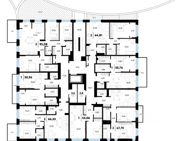 Квартира площадью 95,2 кв. м расположена на 9-м этаже жилого комплекса "В Гагаринском парке" в северо-восточной части Тюмени.