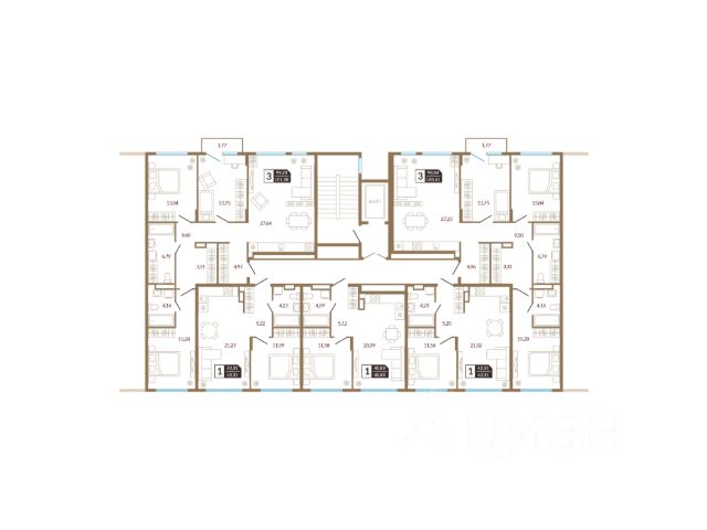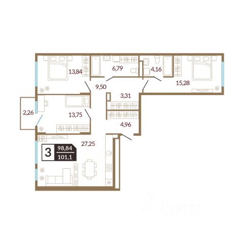 • ✓ Студии, 1-3-комнатные от 97,5 м² до 101,5 м² м²