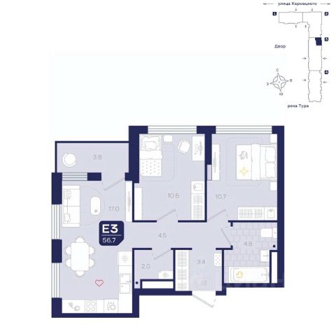 трехкомнатная квартира предлагает идеальное сочетание современного дизайна и функциональности. Просторная кухня-гостиная с теплой лоджией становится центром дома, объединяя зону отдыха и столовую. Это пространство отлично подходит для семейных встреч и дружеских сборищ, обеспечивая комфортную атмосферу для общения и совместных ужинов. Отдельная детская комната создаёт уединённое пространство для ваших детей, обеспечивая им безопасность и комфорт. Она легко адаптируется под потребности вашего ребёнка, будь то игровая зона, место для учёбы или спальня. Большой санузел предлагает все необходимые удобства и достаточное места для хранения. Это помещение отлично спроектировано, чтобы обеспечить комфорт и функциональность в повседневной жизни. Спальня отличается продуманным дизайном, предлагая отдельную рабочую зону, а также нишу для большого шкафа. Это позволяет поддерживать порядок и организованность, создавая уютную атмосферу для отдыха. Эта квартира с отдельной постирочной станет великолепным выбором для тех, кто ценит удобство и современные решения в планировке, создавая идеальные условия для жизни и работы.