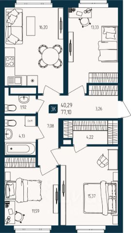 Продаётся 3-комнатная квартира в строящемся доме (Дом Каскад (ГП-2)), срок сдачи: III-кв. 2027, общей площадью 67.65 кв.м., на 11 этаже. Новый жилой комплекс "Квартал Мятный" от Специализированного застройщика "Юпитер" расположен по адресу: г. Тюмень по ул. Кулибина.