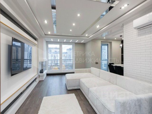 Представляем вам 3х комнатную квартиру с кухней-гостиной в жилом комплексе Новин. Просторная кухня гостиная, 2 спальные зоны, мастерская (можно под детскую), в коридоре 3 функциональных встроенных шкафа (1-входная зона, 2-обувной шкаф, 3-шкаф для хранения полотенец, постельного белья, пледов, подушек и т.д.), 2 санузла. Три окна выходят во двор, одно окно на другую сторону. В квартире установлены датчики теплого пола, кондиционер, счетчики на холодную и горячую воду, электроснабжение, отопление, система телеметрии - передача данных по потреблению воды, электричества, отопления автоматически передаются в управляющую компанию.