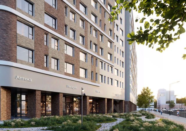 Второй и третий уровень — это "парящие дворы" на стилобате 2 этажа и на эксплуатируемой кровле 19 этажа с озеленением, местами для отдыха и занятий спортом. На первом этаже предусмотрена просторная колясочная, зона для хранения спортинвентаря, лапомойка для домашних питомцев, мягкая зона ожидания гостей, стойка ресепшн, место под кофе-поинт, комната матери и ребенка, гостевой санузел и 2 лифтовых холла.