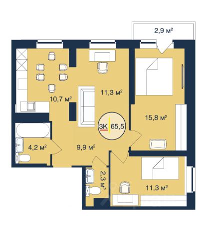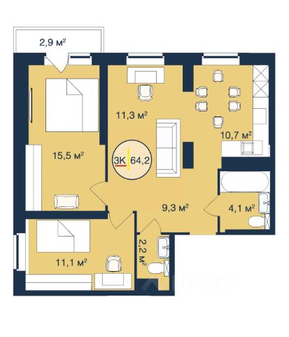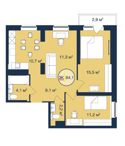 Квартира в счёт первоначального взноса по программе обмена. Звоните, наши менеджеры вам все расскажут! Двухкомнатная квартира с предчистовой отделкой в ЖК "Зарека" на 7 этаже. Общая площадь: 64.41 кв.м., жилая: 31.8 кв.м., площадь просторной кухни-гостиной: 14.8 кв.м. Квартира угловая, идеально подойдет любителям тишины и панорамных видов. В квартире один балкон, один совмещенный санузел. Высота потолков 2.7 м. Квартира находится в корпусе 5-1. Дом монолитный, одноподъездный, высотой 25 этажей. На этаже 12 квартир. В подъезде 2 пассажирских и 1 грузовой лифт. Окончание строительства - 1 квартал 2027 года. Оформление сделки по договору долевого участия. Квартира с кухней-гостиной и двумя спальнями в жилом районе "Зарека". Особенности планировки: предчистовая отделка, балкон. квартиры в нашей базе: ЗРК05.1-Ж1.7.8. Проект На планировочную структуру "Зареки" повлияла близость к автомобильному мосту Челюскинцев. Мы расположили жилые здания так, чтобы они постепенно удалялись от проезжей части. Приём напоминает лесенку: чем сильнее мост возвышается над участком застройки, тем дальше по отношению к нему стоят дома. Этот ступенчатый сдвиг позволил нам сформировать буфер между кварталами и оживлённой магистралью. Мы намерены высадить здесь высокие деревья и создать дополнительную защиту от дорожных шума и пыли. В границах нашего участка мы намерены разместить школу и два встроенных детских сада на 135 и 150 мест. Общественные пространства С севера на юг территорию будет пронизывать пешеходный бульвар. Мы мыслим это общественное пространство как главный центр притяжения. На нём будут сосредоточены основные детские игровые и спортивные зоны, места для встреч и спокойного отдыха. Он также сыграет роль мостика, ведущего к другим нашим проектам — "Европейскому кварталу" и "Дому у озера". Одна из базовых идей мастер-плана касается береговой линии. Сегодня озеленение этой территории носит стихииныи характер, а прямому доступу к Туре препятствует дамба. Мы хотим благоустроить пространства у воды и открыть их для людей. Архитекторы спроектировали систему многоярусных троп и спусков к реке, смотровые площадки и места для активного отдыха и пикников. #ZMwDCF