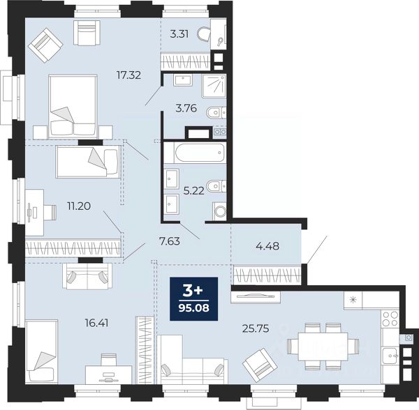 Торопитесь забронировать на этих условиях, период акции ограничен! Стоимость квартиры указана со скидкой, ваша экономия составит 2,100,000 руб. По всем вопросам обращайтесь в офис продаж, наши менеджеры вам все расскажут. Просторная 3-комн. квартира в ЖК "Айвазовский" на 2 этаже. Квартира без отделки, после оформления собственности можно делать ремонт. Общая площадь: 95.08 кв.м. Высота потолков 2.72 м. Дом монолитный, многоподъездный, переменной этажности, от 5 до 21 этажей. Квартира находится в 3-й секции высотой 21 этаж в корпусе ГП-5. На этаже 5 квартир. В подъезде 1 пассажирский и 1 грузовой лифт. На сегодняшний день строительство завершено, дом сдан в 4 квартале 2023 года. Оформление сделки по договору купли-продажи. Новый жилой район располагается в живописном месте на берегу Туры в центральной части города. Принципиально новое пространство для жизни в центре современного города для тех, чьи мечты сбываются, кто нацелен на постоянный рост, перемены к лучшему для себя и своих близких. Каждая деталь ЖК "Айвазовский" вдохновляет и заряжает на новые свершения: авторская архитектура, сбалансированная продуманная инфраструктура, дизайнерские дворы со спортивными и детскими площадками, парковые зоны с фонтанами, водный канал, украшающий центральный прогулочный маршрут района и многое другое. В 2019 года проект стал лауреатом престижной премии Urban Awards 2019 в номинации "Лучший строящийся региональный жилой комплекс бизнес-класса". Главная особенность Айвазовский - соседство разных архитектурных школ в рамках одного дома. Изысканная классика, выразительная эклектика и оригинальный модерн - жить в одном из таких домов настоящий повод для гордости. Айвазовский это идеальное сочетание комфорта, технологий и развитой инфраструктуры. Вход в подъезд возможен с улицы и со двора. Отправляясь на работу или за покупками, жители могут выйти с внешней стороны дома, а для прогулки с ребенком со стороны двора. Экологически чистые материалы и энергосберегающие технологии, качественное освещение общественных зон, видеонаблюдение по всей территории жилого района (в том числе в подъездах, лифтах и в подземном паркинге), закрытые дворы с доступом только для жителей Айвазовский. Часть домов в Айвазовский будут оснащены подземным паркингом. Востребованный в нашем климатическом поясе формат хранения автомобилей защитит собственность владельца в любое время года. Аккредитация в банках: ПАО Банк "ВТБ", ОАО "Альфа-Банк", "Сбербанк России", ПАО "Газпромбанк", АО "ДОМ.РФ" и других. #26FiEl
