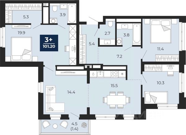 Просторная 3-комн. квартира с предчистовой отделкой в ЖК "Мириады" на 13 этаже. Общая площадь: 101.7 кв.м., жилая: 40.7 кв.м., площадь просторной кухни-столовой: 32.5 кв.м. Квартира без проходных комнат, окна выходят нa три cтopoны дома. В квартире один балкон, два совмещенных санузла. Высота потолков 2.7 м. Дом монолитный, трехподъездный, переменной этажности, от 14 до 16 этажей. Квартира находится в 1-й секции высотой 16 этажей в корпусе ГП-72.103. На этаже 8 квартир. В подъезде 1 пассажирский и 1 грузовой лифт. Окончание строительства - 4 квартал 2025 года. Оформление сделки по договору долевого участия. Вселенная бесконечных историй. Ранее невиданный Тюмени масштаб: территория 240 гектаров и 1 650 000 м² застройки. Мириады это город масштабных перемен и больших возможностей. Город зеленых рощ и зеркальных озер. Город для работы, учебы и развлечений. Город для детей и их родителей. Город для всех и каждого. Проект расположен в районе Мыс рядом с ТРЦ "Тюмень Сити Молл" в границах улицы Тимофея Чаркова, Тобольского тракта и объездной дороги. Срок полного освоения территории - до 2034 года. #2mteVv