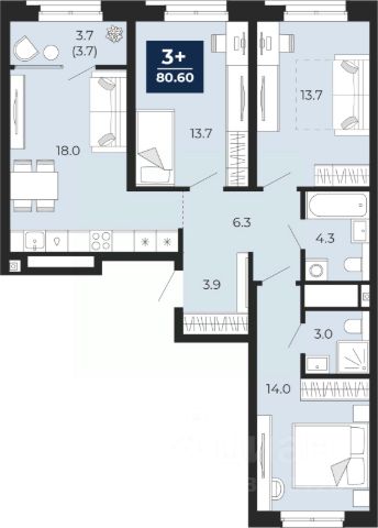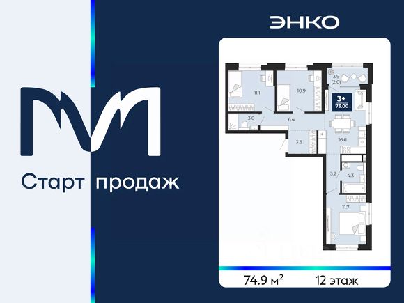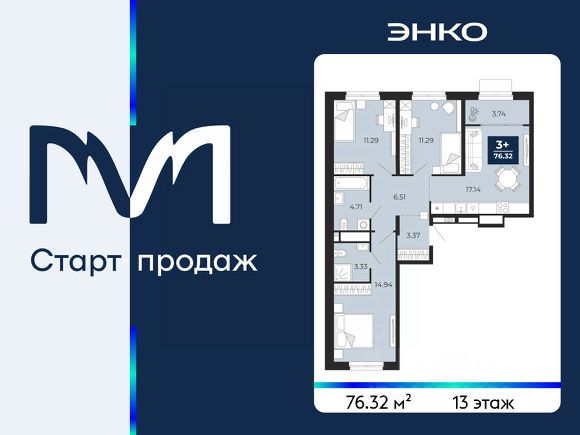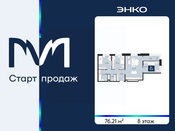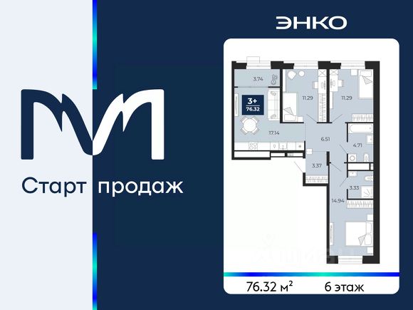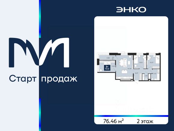 Продается 3-комн. квартира с предчистовой отделкой в ЖК "Мириады" на 2 этаже. Общая площадь: 76.46 кв.м., жилая: 31.31 кв.м., площадь просторной кухни-столовой: 24.59 кв.м. Квартира угловая, идеально подойдет любителям тишины и панорамных видов. В квартире одна лоджия, один совмещенный и один раздельный санузел. Высота потолков 2.7 м. Дом монолитный, черырехподъездный, переменной этажности, от 13 до 16 этажей. Квартира находится в 4-й секции высотой 16 этажей в корпусе ГП-72.106. На этаже 6 квартир. В подъезде 1 пассажирский и 1 грузовой лифт. Окончание строительства - 3 квартал 2028 года. Оформление сделки по договору долевого участия. Вселенная бесконечных историй. Ранее невиданный Тюмени масштаб: территория 240 гектаров и 1 650 000 м² застройки. Мириады это город масштабных перемен и больших возможностей. Город зеленых рощ и зеркальных озер. Город для работы, учебы и развлечений. Город для детей и их родителей. Город для всех и каждого. Проект расположен в районе Мыс рядом с ТРЦ "Тюмень Сити Молл" в границах улицы Тимофея Чаркова, Тобольского тракта и объездной дороги. Срок полного освоения территории - до 2034 года.
