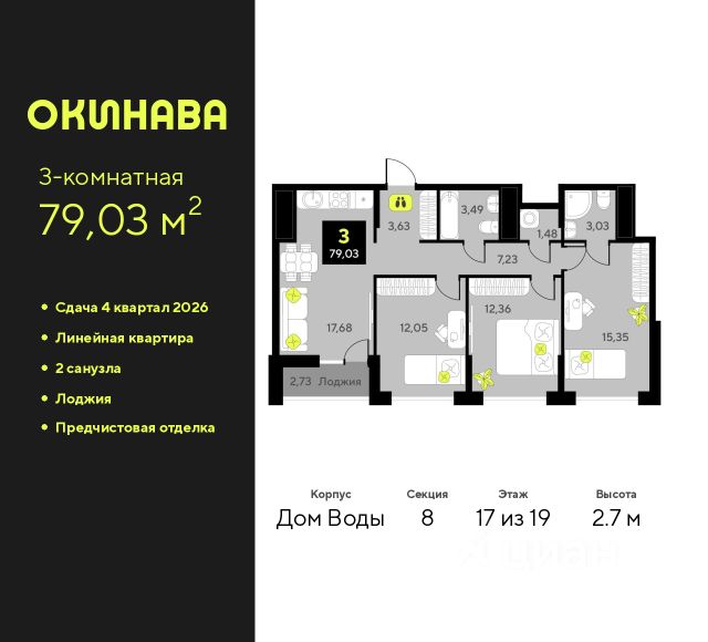 Продается 3-комн. квартира от застройщика с предчистовой отделкой в ЖК "Окинава" на 4 этаже. Общая площадь: 100.38 кв.м., жилая: 43.66 кв.м., площадь просторной кухни-столовой: 29.66 кв.м. Квартира - распашонка, без проходных комнат, окна выходят на paзные стороны дома. В квартире одна лоджия, один совмещенный и один раздельный санузел. Высота потолков 2.7 м. Квартира будет сдана с предчистовой отделкой: на полах стяжка под финишное покрытие, стены подготовлены под покраску или оклейку обоями, разведена вся электрика с подготовкой для установки выключателей и освещения. При желании вы можете заказать отделку под ключ, варианты возможных решений представлены в альбоме фотографий. Дом монолитный, многоподъездный, переменной этажности, от 13 до 19 этажей. Квартира находится в 4-й секции высотой 16 этажей в корпусе Дом Огня. На этаже 6 квартир. В подъезде 1 пассажирский и 1 грузовой лифт. Окончание строительства - 3 квартал 2027 года. Оформление сделки по договору долевого участия. ЖК "Окинава" это не просто жилой комплекс, это остров 4 стихий. Они отражаются во внешнем виде фасадов домов, обустройстве дворов и внутреннем оформлении холлов. Каждая из стихий это отдельный дом. Между домами раскинется большой двухуровневый пешеходный бульвар. Первый уровень прогулочный с местами для отдыха, амфитеатром и фонтанами. На втором уровне расположатся площадки для детей, спортивных игр и тренировок. Квартал будет располагать богатой инфраструктурой: на первых этажах разместятся магазины, пекарни, кофейни, пункты выдачи, аптеки, детские центры, цветочные салоны и многое другое, что сделает жизнь поистине комфортной. В жилом комплексе есть кладовые, а также несколько видов паркинга: уличный гостевой, закрытый теплый и паркинг в стилобате, попасть в который можно на лифте с любого жилого этажа. Дворы в каждом доме отражают его стихию, отличаясь по наполнению. Они дополняют друг друга, образуя единое дворовое пространство жилого комплекса. Закрытая территория, свободная от автомобилей, обеспечит безопасность и спокойный отдых. Холлы оформлены керамогранитом, зеркалами и разноуровневым освещением. Витражные входные группы, мягкие зоны ожидания, видеонаблюдение 24/7, вместительные колясочные и даже лапомойки для питомцев всё это будет в ЖК "Окинава". Жилой комплекс "Окинава" находится в активно развивающемся V заречном микрорайоне, недалеко от озера Алебашево, где в будущем расположится масштабный ивент-парк с зонами отдыха. Удобная транспортная развязка позволит добраться до центра всего за 15 минут. #2SuWCf