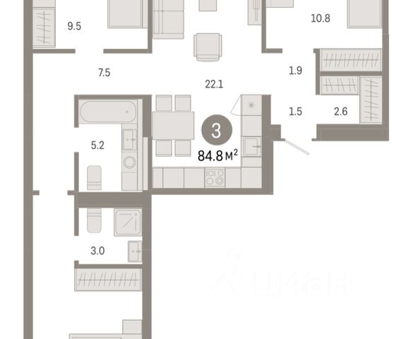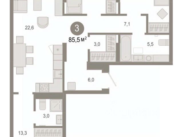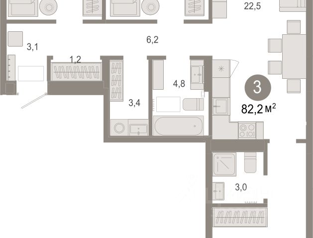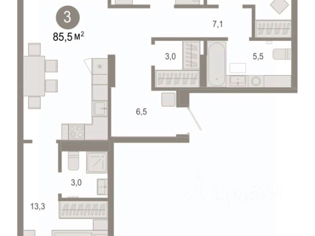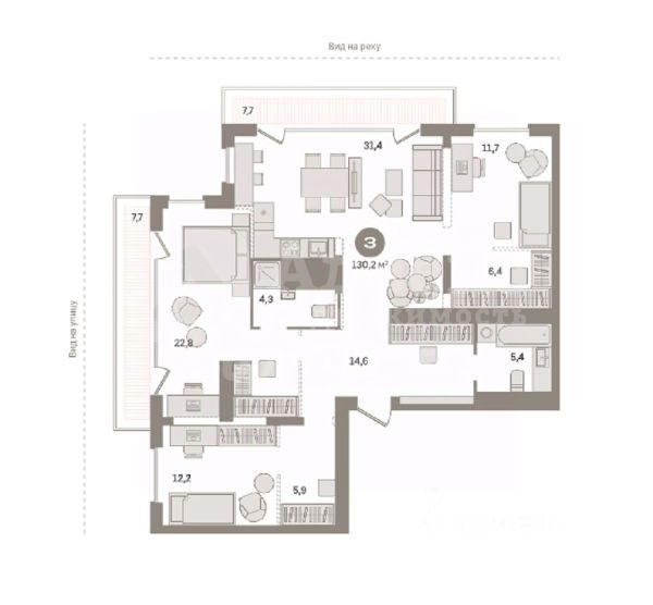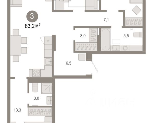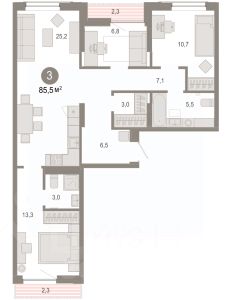 Квартира с кухней-гостиной и тремя спальнями в Октябрьском на Туре. Особенности планировки: балкон, второй санузел, гардеробная, мастер-спальня, предчистовая отделка. квартиры в нашей базе: ОКТ-10-1-1.3.4. Район Проект расположен на берегу реки, в одном из самых живописных и экологичных районов Тюмени. За последние годы облик района изменился. По соседству с индивидуальной застройкой выросли многоквартирные дома. При проектировании "Октябрьского на Туре" нашей приоритетной задачей стало сохранение природного ландшафта: мы постарались деликатно вписать в него современную архитектуру. Квартал удачно расположен с точки зрения дорожной инфраструктуры. На автомобиле путь до центра города составит 15 минут. Добраться до набережной и главных тюменских достопримечательностей можно и на общественном транспорте. В пешей доступности находится автобусная остановка. Проект По мастер-плану здесь будет восемь домов. Ядро застройки составляют замкнутые кварталы переменной этажности. Их высотность понижается по мере приближения к реке. На углах участка мы разместили башни-доминанты. Одной из достопримечательностей квартала станет парк на Туре — здесь появится зеленая зона протяженностью около 6 километров для пеших и велопрогулок. Смысловая ось квартала — широкая главная улица с высаженными вдоль неё высокими деревьями. Они создают тень и работают как шумо- и пылезащитные экраны. Это место сосредоточения основных пешеходных и транспортных потоков, на сторону которых мы ориентировали большинство коммерческих помещений. Отсюда жители могут свернуть на тихие соседские улицы и попасть на внутриквартальную площадь — ещё одну точку притяжения. #zwibwc