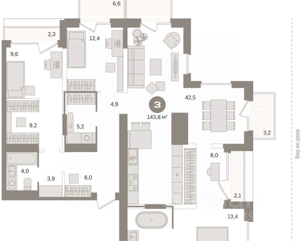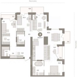 Квартира с кухней-гостиной и тремя спальнями в Октябрьском на Туре. Особенности планировки: балкон, второй санузел, гардеробная, мастер-спальня, предчистовая отделка. квартиры в нашей базе: ОКТ-10-1-1.3.4. Район Проект расположен на берегу реки, в одном из самых живописных и экологичных районов Тюмени. За последние годы облик района изменился. По соседству с индивидуальной застройкой выросли многоквартирные дома. При проектировании "Октябрьского на Туре" нашей приоритетной задачей стало сохранение природного ландшафта: мы постарались деликатно вписать в него современную архитектуру. Квартал удачно расположен с точки зрения дорожной инфраструктуры. На автомобиле путь до центра города составит 15 минут. Добраться до набережной и главных тюменских достопримечательностей можно и на общественном транспорте. В пешей доступности находится автобусная остановка. Проект По мастер-плану здесь будет восемь домов. Ядро застройки составляют замкнутые кварталы переменной этажности. Их высотность понижается по мере приближения к реке. На углах участка мы разместили башни-доминанты. Одной из достопримечательностей квартала станет парк на Туре — здесь появится зеленая зона протяженностью около 6 километров для пеших и велопрогулок. Смысловая ось квартала — широкая главная улица с высаженными вдоль неё высокими деревьями. Они создают тень и работают как шумо- и пылезащитные экраны. Это место сосредоточения основных пешеходных и транспортных потоков, на сторону которых мы ориентировали большинство коммерческих помещений. Отсюда жители могут свернуть на тихие соседские улицы и попасть на внутриквартальную площадь — ещё одну точку притяжения. #zwibwc