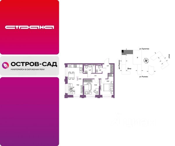 Продается 3комнатная квартира на 2 этаже от застройщика Страна Девелопмент. Площадь квартиры 50,26 кв. м.