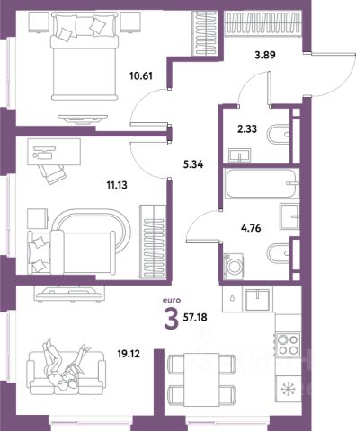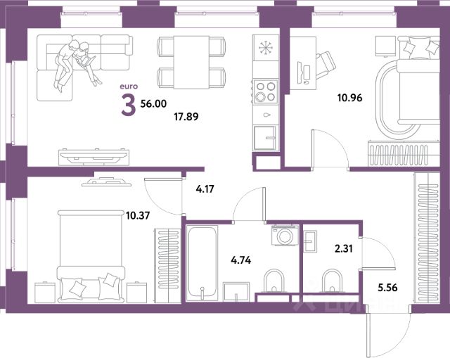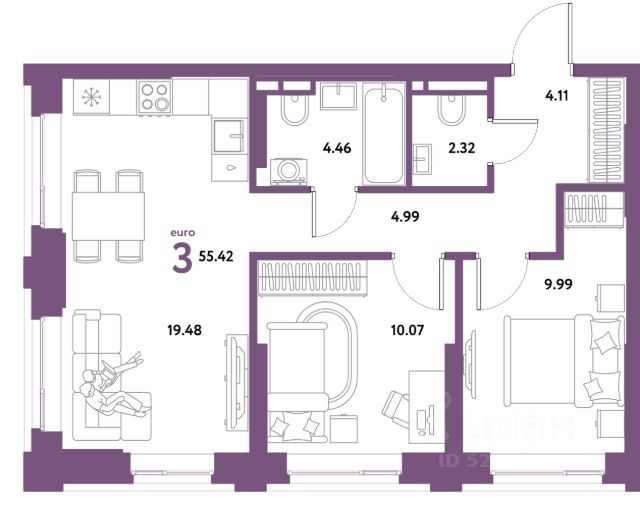 Продаётся 3-комнатная квартира в строящемся доме (Дом Тенерифе (ГП-2Я)), срок сдачи: IV-кв. 2027, общей площадью 55.35 кв.м., на 2 этаже. Новый жилой комплекс "Остров-сад" от Специализированного застройщика "Страна. Коммунистическая" расположен по адресу: г. Тюмень, по ул. Ярославская.