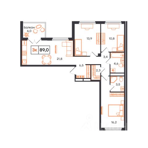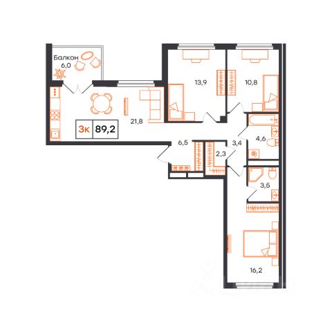 Продаётся 3-комнатная квартира в строящемся доме (Лот 1, секция E (Василия Малкова, 20к2)), срок сдачи: I-кв. 2027, общей площадью 89 кв.м., на 6 этаже. Новый жилой комплекс от застройщика СЗ КВАРТАЛ расположен в городе Тюмень на улице Бориса Прудаева.