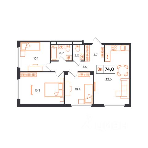 Продаётся 3-комнатная квартира в строящемся доме (Лот 1, секция E (Василия Малкова, 20к2)), срок сдачи: I-кв. 2027, общей площадью 74 кв.м., на 2 этаже. Новый жилой комплекс от застройщика СЗ КВАРТАЛ расположен в городе Тюмень на улице Бориса Прудаева.
