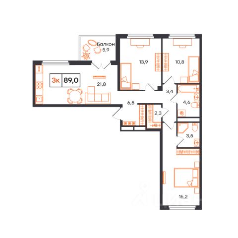 Продаётся 3-комнатная квартира в строящемся доме (Лот 1, секция E (Василия Малкова, 20к2)), срок сдачи: I-кв. 2027, общей площадью 89.2 кв.м., на 2 этаже. Новый жилой комплекс от застройщика СЗ КВАРТАЛ расположен в городе Тюмень на улице Бориса Прудаева.