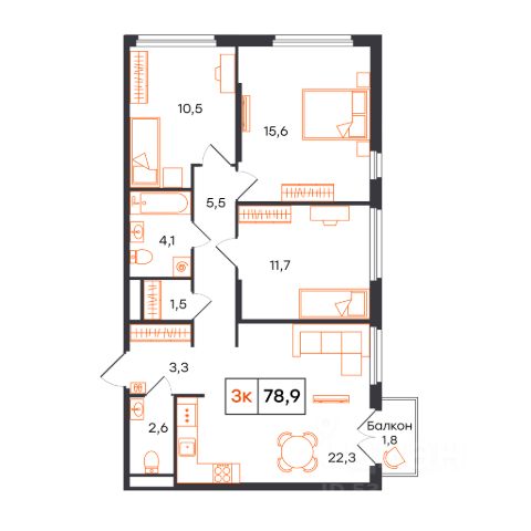 Продаётся 3-комнатная квартира в строящемся доме (Лот 1, секция C (Василия Малкова, 20к5)), срок сдачи: I-кв. 2027, общей площадью 78.9 кв.м., на 4 этаже. Новый жилой комплекс от застройщика СЗ КВАРТАЛ расположен в городе Тюмень на улице Бориса Прудаева.