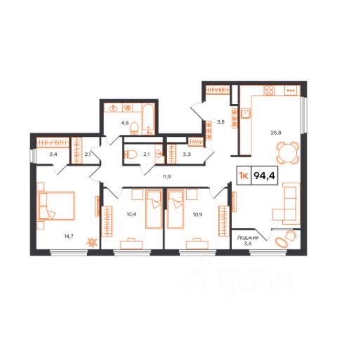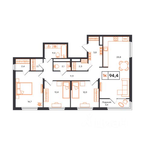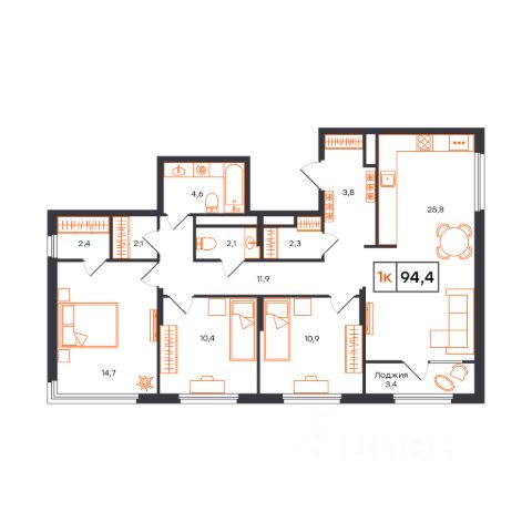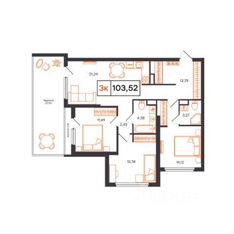 Продаётся 3-комнатная квартира в строящемся доме (Лот 1, секция А (Василия Малкова, 20к1)), срок сдачи: I-кв. 2027, общей площадью 94.4 кв.м., на 14 этаже. Новый жилой комплекс от застройщика СЗ КВАРТАЛ расположен в городе Тюмень на улице Бориса Прудаева.