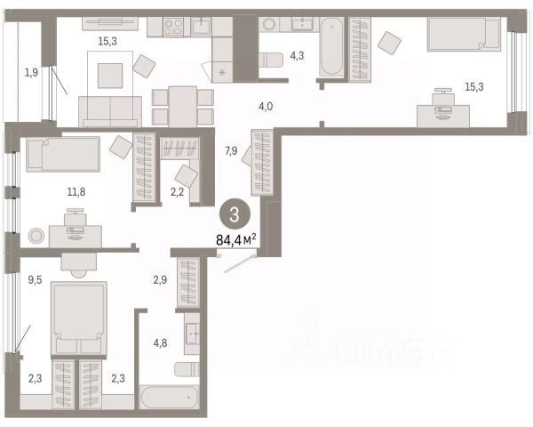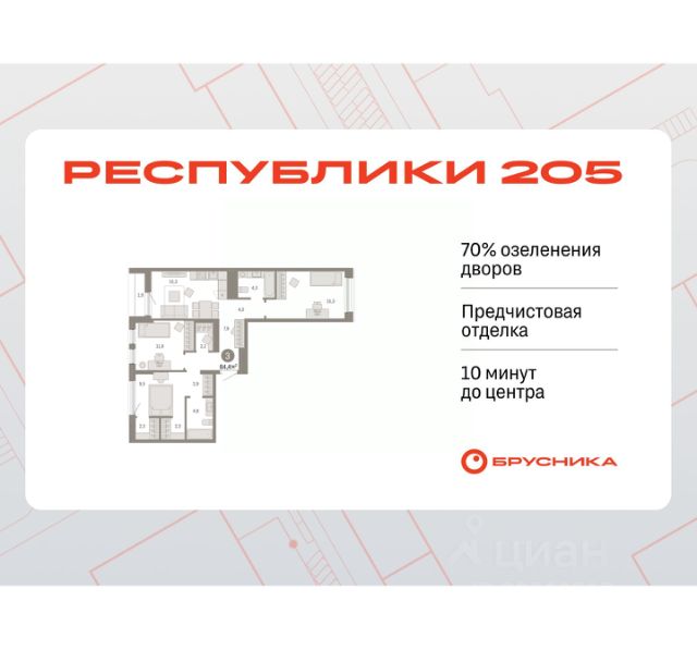 Квартира в счёт первоначального взноса по программе обмена. Звоните, наши менеджеры вам все расскажут! 3-комн. квартира с предчистовой отделкой в ЖК "Республики 205" на 2 этаже. Общая площадь: 87.88 кв.м., жилая: 32.6 кв.м., площадь просторной кухни-гостиной: 22.4 кв.м. Квартира - распашонка, без проходных комнат, окна выходят на paзные стороны дома. В квартире три балкона, два совмещенных санузла. Высота потолков 2.7 м. Купить квартиру можно с помощью программ покупки от застройщика Брусника: - ипотека по эксклюзивной ставке с помощью в получении положительного кредитного решения через сервис ипотечный брокер; - квартиры в рассрочку без процентов от застройщика Брусника; - обмен квартиры на новую. Получить одобрение ипотеки или рассрочку, а также осуществить обмен квартир можно онлайн. Дом монолитный, многоподъездный, переменной этажности, от 7 до 16 этажей. Квартира находится в 6-й секции высотой 7 этажей в корпусе 2. На этаже 6 квартир. В подъезде 1 грузовой лифт. Начало строительства - 1 квартал 2024 года. Окончание строительства - 1 квартал 2026 года. Оформление сделки по договору долевого участия. Район Проект расположен в границах улиц Пермякова, Энергетиков, Воровского и Республики. До центра города — 10 минут на машине. Рядом — автомобильная развязка на пересечении улиц Пермякова и Республики. В шаговой доступности есть школы, детские сады, поликлиники, крупный торговый центр, автовокзал и несколько скверов. Проект "Республики 205" — это проект комплексного развития территории, уникальный по своему наполнению. Переосмысляя бывшую территорию завода медицинского оборудования, мы создадим новое место силы — микрорайон, насыщенный деловой, развлекательной, рекреационной, игровой, образовательной и медицинской инфраструктурой. До каждого полезного сервиса здесь можно будет дойти за 15 минут. Локальными центрами "Республики 205" будут общественные пространства — скверы, парки, бульвары и площади. В границах нашего участка мы намерены разместить школу, рассчитанную на 1550 учеников, два детских сада на 300 мест и встроенный детский сад на 100 мест. В одном из цехов бывшего завода расположится креативный кластер "Кузница". Он станет площадкой для нескольких институций — галереи, лектория, книжного магазина-библиотеки, кинобара и точек креативного pop-up-ритейла. Пешеходные бульвары внутри района соединят между собой улицу ресторанов, детские и спортивные площадки, событийную площадь и летний кинотеатр. Идентификатор квартиры по базе застройщика: РСП-02-6-6. #z3fFZE