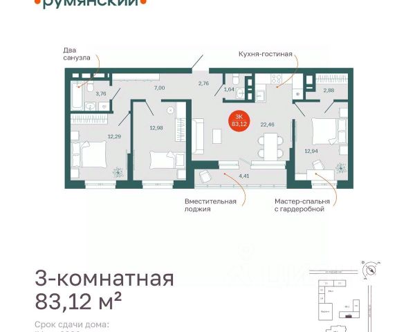 тремя изолированными комнатами правильной формы - 10,5 и 13,5 кв.м. и 14 кв.м., разнесенными по квартире, что обеспечит комфортное личное пространство для детей и родителей. В каждой комнате есть ниша под организацию мест для хранения вещей.