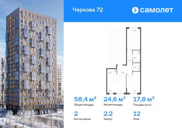 Дом монолитный, многоподъездный, переменной этажности, от 9 до 22 этажей. Квартира находится в 73.5-й секции высотой 21 этаж в корпусе ГП-73. На этаже 6 квартир. В подъезде 1 пассажирский и 1 грузовой лифт. Окончание строительства - 1 квартал 2026 года. Оформление сделки по договору долевого участия.
