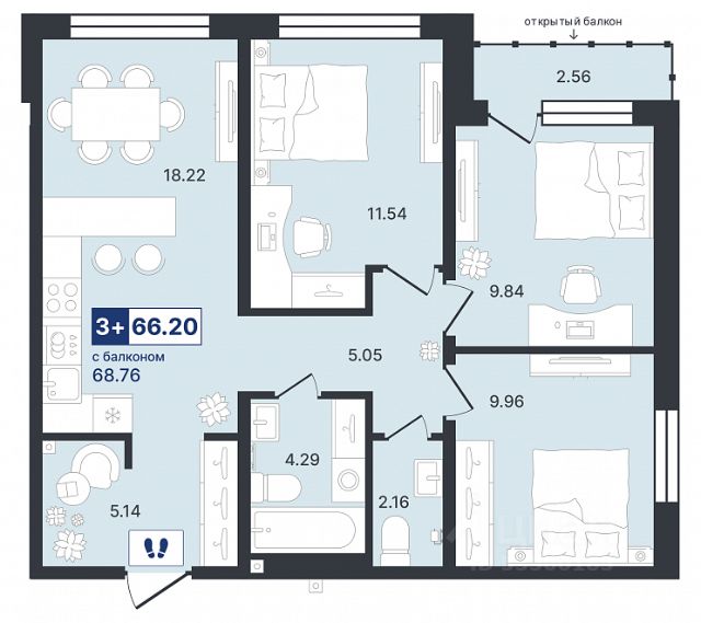 Планировка самая комфортная, потому что эргономичная, помещения правильной формы, кухня 15 квм., комнаты 19 и 14 квм, балкон облагорожен. Санузел с мебелью и стиральной машиной. Кухня с дорогим кухонным гарнитуром и встроенной техникой. А так же, остаются два кондиционера, два шкафа, обеденная зона, холодильник, два дивана.