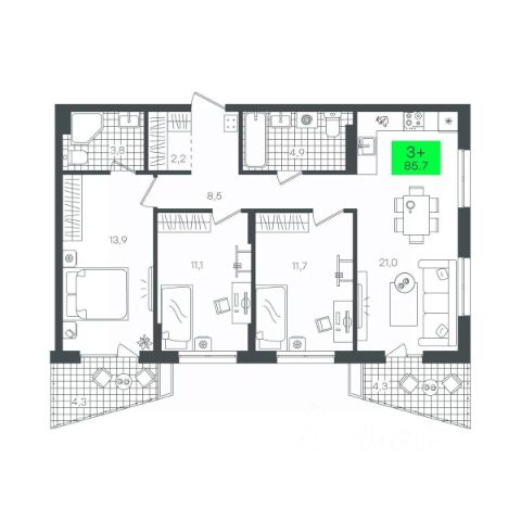 Продаётся 3-комнатная квартира в строящемся доме (ГП-2 (Ставропольская, 1к4)), срок сдачи: IV-кв. 2026, общей площадью 66.2 кв.м., на 6 этаже. Новый жилой комплекс "Один плюс один" от Специализированного застройщика "Звезда" расположен по адресу: г. Тюмень, ул. Ставропольская, 1А.