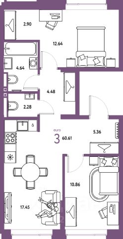 • ✅ Минимальная площадь: 48,7 м²