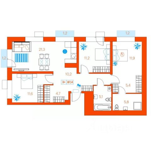 Евро-трехкомнатная квартира предлагает идеальное сочетание современного дизайна и функциональности. Просторная кухня-гостиная с теплой лоджией становится центром дома, объединяя зону отдыха и столовую. Это пространство отлично подходит для семейных встреч и дружеских сборищ, обеспечивая комфортную атмосферу для общения и совместных ужинов. Отдельная детская комната создаёт уединённое пространство для ваших детей, обеспечивая им безопасность и комфорт. Она легко адаптируется под потребности вашего ребёнка, будь то игровая зона, место для учёбы или спальня. Большой санузел предлагает все необходимые удобства и достаточное места для хранения. Это помещение отлично спроектировано, чтобы обеспечить комфорт и функциональность в повседневной жизни. Спальня отличается продуманным дизайном, предлагая отдельную рабочую зону, а также нишу для большого шкафа. Это позволяет поддерживать порядок и организованность, создавая уютную атмосферу для отдыха. Эта квартира с отдельной постирочной станет великолепным выбором для тех, кто ценит удобство и современные решения в планировке, создавая идеальные условия для жизни и работы.
