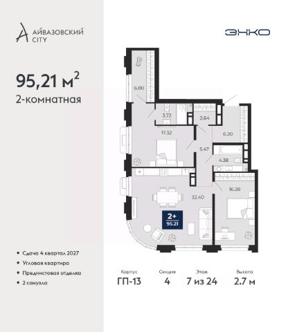Дом монолитный, черырехподъездный, переменной этажности, от 13 до 23 этажей. Квартира находится во 2-й секции высотой 13 этажей в корпусе ГП-2. На этаже 5 квартир. В подъезде 1 пассажирский и 1 грузовой лифт. В настоящее время строительство завершено, дом сдан во 2 квартале 2023 года. Оформление сделки по договору купли-продажи.