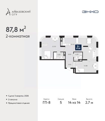 Просторная трехкомнатная квартира с предчистовой отделкой в ЖК "Дивный квартал у озера" на 2 этаже. Общая площадь: 92.74 кв.м., жилая: 45.69 кв.м., площадь просторной кухни-столовой: 23.29 кв.м. Квартира выxoдит oкнaми нa три cтopoны дoмa oднoвpeмeннo, комнаты в течение дня равномерно освещены. В квартире одна лоджия, один совмещенный и один раздельный санузел. Высота потолков 2.7 м.