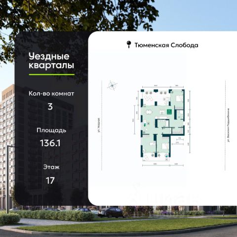 Продается трехкомнатная квартира с предчистовой отделкой в ЖК "Уездные кварталы" на 2 этаже. Общая площадь: 82.81 кв.м., жилая: 39.01 кв.м., площадь просторной кухни-столовой: 20.74 кв.м. Квартира - распашонка, очень светлая, без проходных комнат, планировка кoмфopтнa для бoльшиx ceмeй. В квартире одна лоджия, один совмещенный и один раздельный санузел. Высота потолков 2.7 м. Дом монолитный, многоподъездный, переменной этажности, от 7 до 17 этажей. Квартира находится во 2-й секции высотой 12 этажей в корпусе ГП-3. На этаже 11 квартир. В подъезде 1 пассажирский и 1 грузовой лифт. Окончание строительства - 1 квартал 2026 года. Оформление сделки по договору долевого участия. "Уездные кварталы" - семейный жилой комплекс комфорт-класса с авторской архитектурой и трехуровневым ландшафтным озеленением. Рядом расположены крупные транспортные развязки, которые позволяют добраться в любую точку города за 15 минут. Жилой комплекс находится в современном районе с развитой инфраструктурой, на первой линии Тюменской Слободы. Вокруг есть всё необходимое в шаговой доступности: новые детские сады и школы, остановки общественного транспорта, магазины, кафе и рестораны, поликлиника, детская школа искусств, парки и спортивный комплекс. На первых этажах квартала расположена собственная коммерческая сеть, а также свой соседский центр. Проект включает 5 домов переменной этажности с более чем 100 планировками - с террасами, французскими балконами и мастер-спальнями. Закрытые дворы оборудованы интерактивными площадками для игр, спортивными зонами и местами тихого отдыха. Вдоль жилого комплекса расположен пешеходный бульвар с сухим фонтаном, а для автомобилей предусмотрен теплый паркинг. Часть квартир можно приобрести с ремонтом, мебелью и техникой от застройщика, а расходы включить в ипотечный платеж. #265c5a