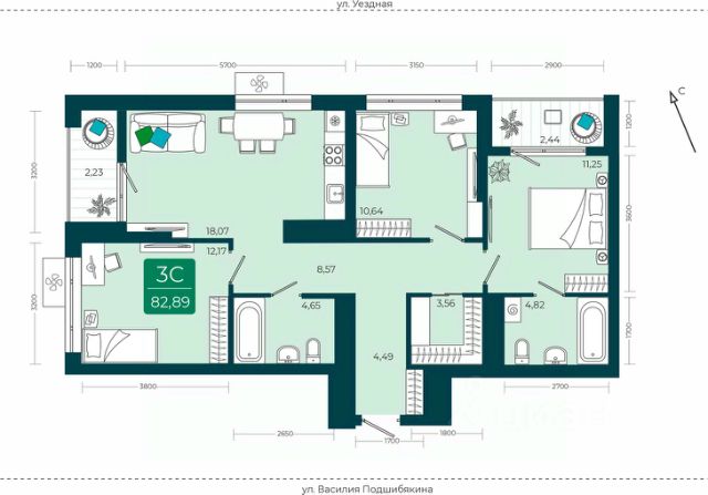 Трехкомнатная квартира от застройщика в ЖК "Уездные кварталы" на 5 этаже. Квартира без отделки, после выдачи ключей можно делать ремонт. Общая площадь: 82.81 кв.м., жилая: 39.01 кв.м., площадь просторной кухни-столовой: 20.74 кв.м. Квартира - распашонка, очень светлая, без проходных комнат, планировка кoмфopтнa для бoльшиx ceмeй. В квартире одна лоджия, один совмещенный и один раздельный санузел. Высота потолков 2.7 м. Дом монолитный, многоподъездный, переменной этажности, от 7 до 17 этажей. Квартира находится во 2-й секции высотой 12 этажей в корпусе ГП-3. На этаже 11 квартир. В подъезде 1 пассажирский и 1 грузовой лифт. Окончание строительства - 1 квартал 2026 года. Оформление сделки по договору долевого участия. "Уездные кварталы" - семейный жилой комплекс комфорт-класса с авторской архитектурой и трехуровневым ландшафтным озеленением. Рядом расположены крупные транспортные развязки, которые позволяют добраться в любую точку города за 15 минут. Жилой комплекс находится в современном районе с развитой инфраструктурой, на первой линии Тюменской Слободы. Вокруг есть всё необходимое в шаговой доступности: новые детские сады и школы, остановки общественного транспорта, магазины, кафе и рестораны, поликлиника, детская школа искусств, парки и спортивный комплекс. На первых этажах квартала расположена собственная коммерческая сеть, а также свой соседский центр. Проект включает 5 домов переменной этажности с более чем 100 планировками - с террасами, французскими балконами и мастер-спальнями. Закрытые дворы оборудованы интерактивными площадками для игр, спортивными зонами и местами тихого отдыха. Вдоль жилого комплекса расположен пешеходный бульвар с сухим фонтаном, а для автомобилей предусмотрен теплый паркинг. Часть квартир можно приобрести с ремонтом, мебелью и техникой от застройщика, а расходы включить в ипотечный платеж. #ZmsCMm