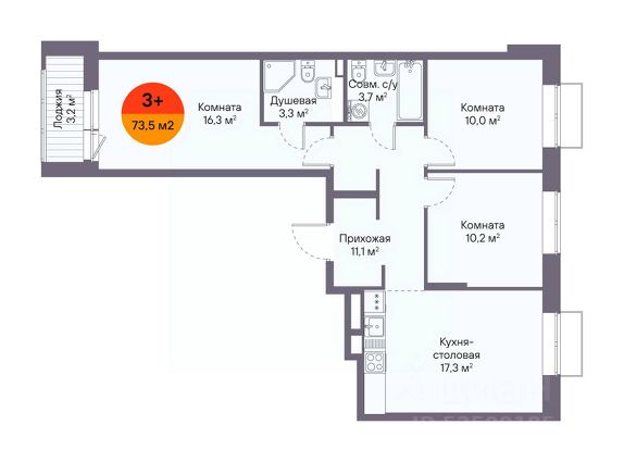 Продаётся 3-комнатная квартира в строящемся доме (Чаркова, 73), срок сдачи: I-кв. 2027, общей площадью 72.6 кв.м., на 12 этаже. Новый жилой комплекс от Специализированного застройщика "СК Пермский" расположен по адресу: г. Тюмень, по ул. Тимофея Чаркова.