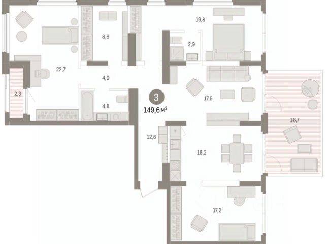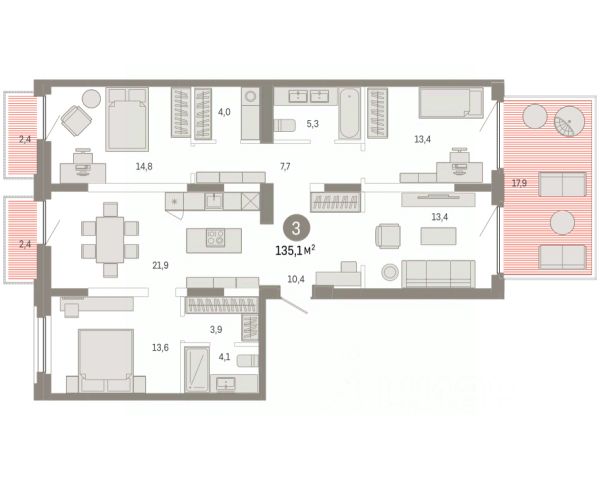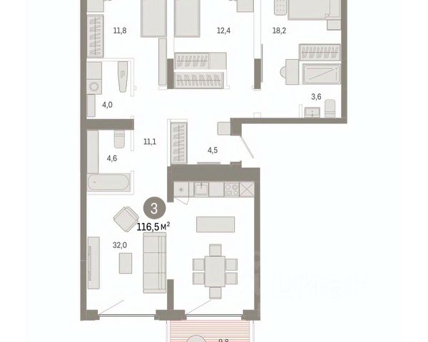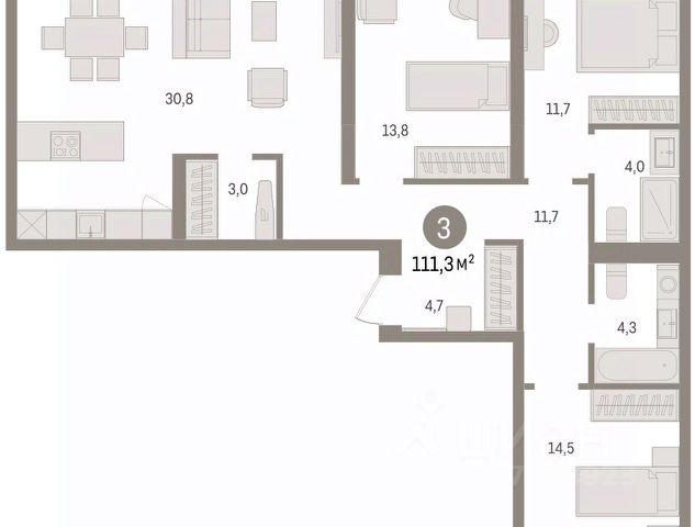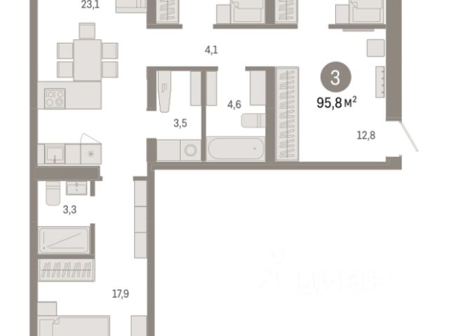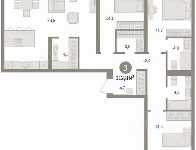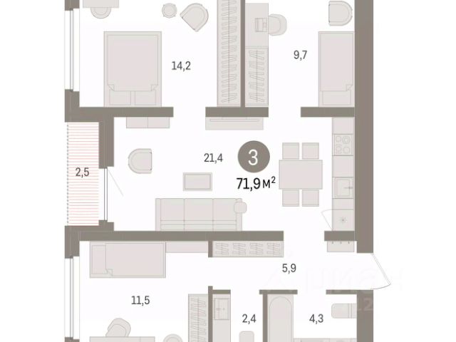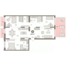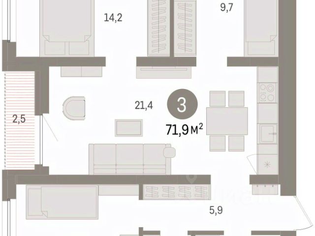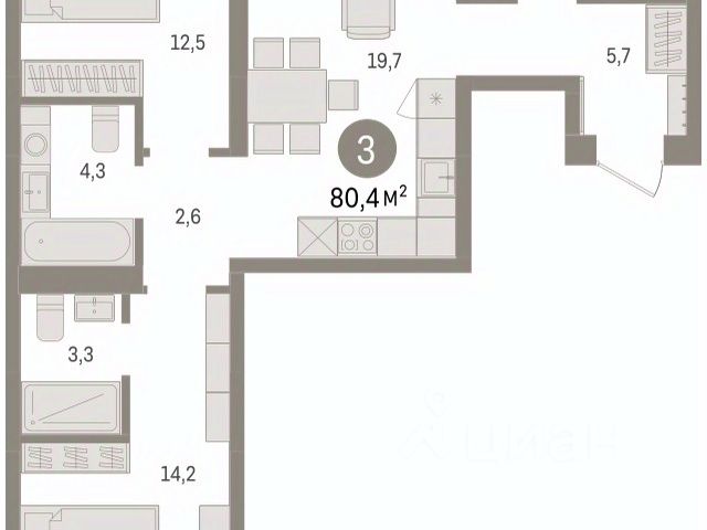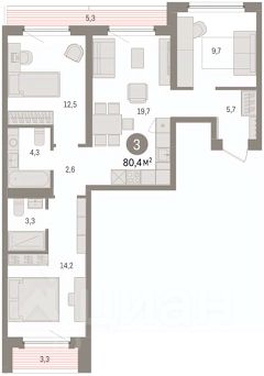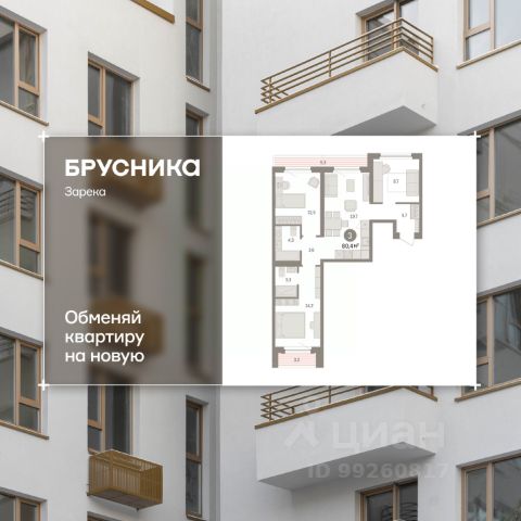 Просторная трехкомнатная квартира с предчистовой отделкой в ЖК "Зарека" на 5 этаже. Общая площадь: 80.66 кв.м., жилая: 29 кв.м., площадь просторной кухни-гостиной: 25.8 кв.м. Квартира угловая, окна oбecпeчивaют paвнoмepнoe ocвeщeниe в тeчeниe дня. В квартире один совмещенный и один раздельный санузел. Высота потолков 2.7 м. Дом монолитный, многоподъездный, переменной этажности, от 8 до 16 этажей. Квартира находится в 1-й секции высотой 8 этажей в корпусе 2-1. На этаже 7 квартир. В подъезде 1 пассажирский и 1 грузовой лифт. Окончание строительства - 2 квартал 2029 года. Оформление сделки по договору долевого участия. Квартира с кухней-гостиной и тремя спальнями в жилом районе "Зарека". Особенности планировки: второй санузел, предчистовая отделка, разнесённые спальни. О доме Замкнутый квартал высотой 8 этажей с 16-ти этажной башней-доминантой и двором на стилобате двухуровневого паркинга. Дом 2.1 сочетает в себе приемы классической и современной архитектуры. Выразительность достигается благодаря симметричной композиции фасада, чередование массинга идет за счет эркеров и подрезок. Фасады первых этажей выполнены из клинкерного кирпича, выше - штукатурные. Акцентом на фасаде являются металлические импосты окон, темно-серого цвета, который будет контрастировать со светлыми оттенками самого фасада. квартиры в нашей базе: ЗРК02.1-Ж1.5.7. Проект На планировочную структуру "Зареки" повлияла близость к автомобильному мосту Челюскинцев. Мы расположили жилые здания так, чтобы они постепенно удалялись от проезжей части. Приём напоминает лесенку: чем сильнее мост возвышается над участком застройки, тем дальше по отношению к нему стоят дома. Этот ступенчатый сдвиг позволил нам сформировать буфер между кварталами и оживлённой магистралью. Мы намерены высадить здесь высокие деревья и создать дополнительную защиту от дорожных шума и пыли. В границах нашего участка мы намерены разместить школу и два встроенных детских сада на 135 и 150 мест. Общественные пространства С севера на юг территорию будет пронизывать пешеходный бульвар. Мы мыслим это общественное пространство как главный центр притяжения. На нём будут сосредоточены основные детские игровые и спортивные зоны, места для встреч и спокойного отдыха. Он также сыграет роль мостика, ведущего к другим нашим проектам — "Европейскому кварталу" и "Дому у озера". Одна из базовых идей мастер-плана касается береговой линии. Сегодня озеленение этой территории носит стихииныи характер, а прямому доступу к Туре препятствует дамба. Мы хотим благоустроить пространства у воды и открыть их для людей. Архитекторы спроектировали систему многоярусных троп и спусков к реке, смотровые площадки и места для активного отдыха и пикников. #2mEsz2