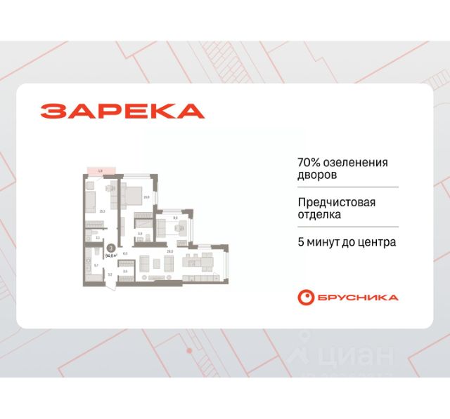 Квартира в счёт первоначального взноса по программе обмена. Информация по телефону, мы вам все подробно расскажем! Продается 3-комн. квартира с предчистовой отделкой в ЖК "Зарека" на 7 этаже. Общая площадь: 109 кв.м., площадь просторной кухни-гостиной: 17.4 кв.м. Высота потолков 2.7 м. Дом монолитный, многоподъездный, переменной этажности, от 5 до 9 этажей. Квартира находится в 3-й секции высотой 7 этажей в корпусе 1. На этаже 6 квартир. В подъезде 1 грузовой лифт. Начало строительства - 3 квартал 2023 года. Окончание строительства - 3 квартал 2026 года. Оформление сделки по договору долевого участия. Двухуровневая квартира с кухней-гостиной и тремя спальнями в жилом районе "Зарека". Особенности планировки: двухуровневая, вид во двор, разнесённые спальни, предчистовая отделка, летняя кухня на крыше, балкон, терраса на крыше. квартиры в нашей базе: Панама01-01-3-3.7.4. Проект На планировочную структуру "Зареки" повлияла близость к автомобильному мосту Челюскинцев. Мы расположили жилые здания так, чтобы они постепенно удалялись от проезжей части. Приём напоминает лесенку: чем сильнее мост возвышается над участком застройки, тем дальше по отношению к нему стоят дома. Этот ступенчатый сдвиг позволил нам сформировать буфер между кварталами и оживлённой магистралью. Мы намерены высадить здесь высокие деревья и создать дополнительную защиту от дорожных шума и пыли. В границах нашего участка мы намерены разместить школу и два встроенных детских сада на 135 и 150 мест. Общественные пространства С севера на юг территорию будет пронизывать пешеходный бульвар. Мы мыслим это общественное пространство как главный центр притяжения. На нём будут сосредоточены основные детские игровые и спортивные зоны, места для встреч и спокойного отдыха. Он также сыграет роль мостика, ведущего к другим нашим проектам — "Европейскому кварталу" и "Дому у озера". Одна из базовых идей мастер-плана касается береговой линии. Сегодня озеленение этой территории носит стихииныи характер, а прямому доступу к Туре препятствует дамба. Мы хотим благоустроить пространства у воды и открыть их для людей. Архитекторы спроектировали систему многоярусных троп и спусков к реке, смотровые площадки и места для активного отдыха и пикников. #zzeuVd
