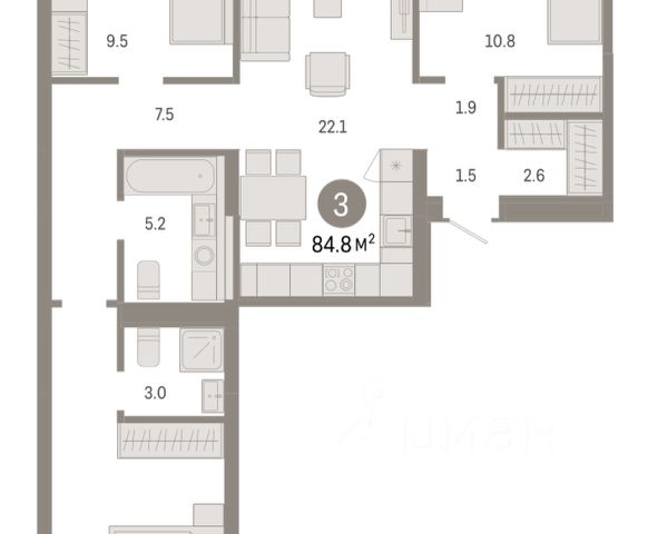 3-комн. квартира с предчистовой отделкой в ЖК "Республики 205" на 7 этаже. Общая площадь: 108.16 кв.м. Высота потолков 2.7 м. Купить квартиру можно с помощью программ покупки от застройщика Брусника: - ипотека по эксклюзивной ставке с помощью в получении положительного кредитного решения через сервис ипотечный брокер; - квартиры в рассрочку без процентов от застройщика Брусника; - обмен квартиры на новую. Получить одобрение ипотеки или рассрочку, а также осуществить обмен квартир можно онлайн. Дом монолитный, многоподъездный, переменной этажности, от 7 до 16 этажей. Квартира находится в 4-й секции высотой 7 этажей в корпусе 2. На этаже 4 квартиры. В подъезде 1 грузовой лифт. Начало строительства - 1 квартал 2024 года. Окончание строительства - 1 квартал 2026 года. Оформление сделки по договору долевого участия. Район Проект расположен в границах улиц Пермякова, Энергетиков, Воровского и Республики. До центра города — 10 минут на машине. Рядом — автомобильная развязка на пересечении улиц Пермякова и Республики. В шаговой доступности есть школы, детские сады, поликлиники, крупный торговый центр, автовокзал и несколько скверов. Проект "Республики 205" — это проект комплексного развития территории, уникальный по своему наполнению. Переосмысляя бывшую территорию завода медицинского оборудования, мы создадим новое место силы — микрорайон, насыщенный деловой, развлекательной, рекреационной, игровой, образовательной и медицинской инфраструктурой. До каждого полезного сервиса здесь можно будет дойти за 15 минут. Локальными центрами "Республики 205" будут общественные пространства — скверы, парки, бульвары и площади. В границах нашего участка мы намерены разместить школу, рассчитанную на 1550 учеников, два детских сада на 300 мест и встроенный детский сад на 100 мест. В одном из цехов бывшего завода расположится креативный кластер "Кузница". Он станет площадкой для нескольких институций — галереи, лектория, книжного магазина-библиотеки, кинобара и точек креативного pop-up-ритейла. Пешеходные бульвары внутри района соединят между собой улицу ресторанов, детские и спортивные площадки, событийную площадь и летний кинотеатр. Идентификатор квартиры по базе застройщика: РСП-02-4-4. #z3fFzg Продам 3-комнатную квартиру в Тюмени.