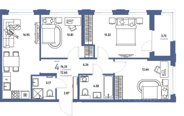 Квартира располагается в ГК "Чистые Пруды" от "Паритет девелопмент". Это флагманский проект компании в Тюмени. Расположение вдали от шумных улиц и оживленного центра создает ощущение жизни на природе и окружает тишиной и спокойствием. Есть вся необходимая социальная и коммерческая инфраструктура: магазины и сфера услуг на первых этажах. Школы, сады, поликлиника, парки в шаговой доступности. Квартал строится в районе Новой Лесобазы. Рядом выезд на объездную, что существенно экономит время. Поездка до центра города на автомобиле занимает 15-20 минут. Городские кварталы "Чистые Пруды" сформирован из домов переменной этажности и многоуровневых паркингов. Ввод 1 очереди строительства запланирован на II кв. 2028 года. Всё благоустройство квартала представлено двумя функциональными зонами: приватная внутри дворовая и общественная. Каждый закрытый двор имеет выход на единую променадную зону - бульвар. Концепция благоустройства основана на принципе модульности, что формирует основную идею приватности. Приватность проекта подчеркивает его особенный климат внутри. Модульное благоустройство позволит максимально эффективно использовать пространство двора и удовлетворить потребности различных категорий жителей. В квартирах базово выполнена улучшенная черновая отделка, которая включает в себя: выровненные стены, стяжка пола с шумоизоляцией, горизонтальная разводка отопления, установлены счетчики с телеметрией, окна с 5-камерным профилем и надежные входные двери. При желании можно добавить ремонт от застройщика и включить его в стоимость ипотеки, что позволит сэкономить на стройматериалах и переехать сразу после получения ключей. Характеристики квартиры: этаж - 2 количество комнат - 4 номер помещения - 144 площадь квартиры - 92,4 кв.мГармоничные пропорции и большие окна наполняют пространство светом, создавая уютную атмосферу. Умное зонирование позволяет удобно организовать как рабочую, так и жилую зоны, что особенно важно для современных жителей. Санузел спроектирован с учетом всех потребностей: здесь есть ванна и место для стиральной машины. Каждый метр квартиры используется с максимальной эффективностью, что делает эту планировку отличным выбором для тех, кто ценит комфорт и удобство.