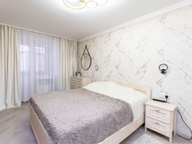 Косметический ремонт делали для себя: на полу ламинат и линолеум на кухне, стены аккуратно выровнены и оформлены в светлых, приятных тонах. Потолки также выровнены и окрашены износостойкой краской, что гарантирует долговечность. Батареи заменили на биметаллические радиаторы, которые можно регулировать по температуре. Межкомнатные двери из натурального дерева , а раздельный санузел отделан кафелем, что добавляет дополнительный комфорт.