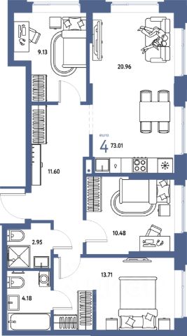 • ✅ Минимальная площадь: 73 м²
