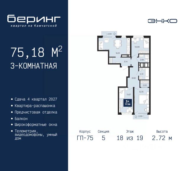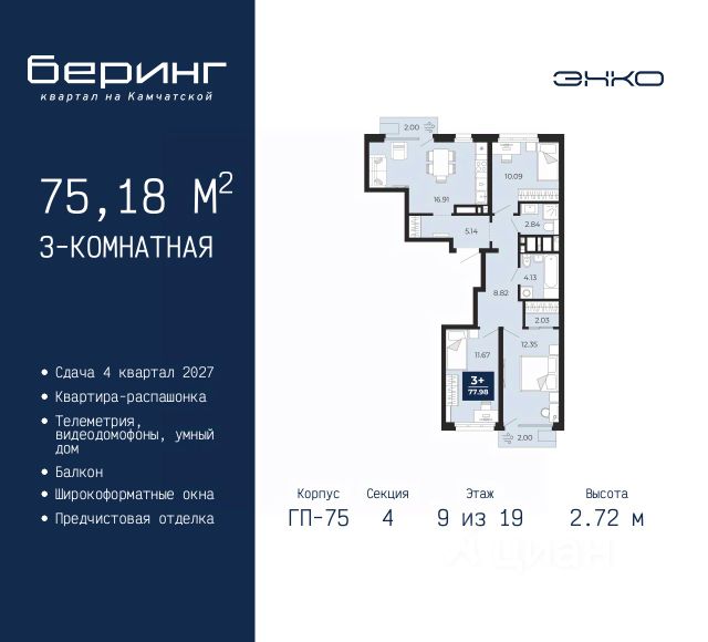 Квартира располагается в ГК "Чистые Пруды" от "Паритет девелопмент". Это флагманский проект компании в Тюмени. Расположение вдали от шумных улиц и оживленного центра создает ощущение жизни на природе и окружает тишиной и спокойствием. Есть вся необходимая социальная и коммерческая инфраструктура: магазины и сфера услуг на первых этажах. Школы, сады, поликлиника, парки в шаговой доступности. Квартал строится в районе Новой Лесобазы. Рядом выезд на объездную, что существенно экономит время. Поездка до центра города на автомобиле занимает 15-20 минут. Городские кварталы "Чистые Пруды"сформирован из домов переменной этажности и многоуровневых паркингов. Ввод 1 очереди строительства запланирован на II кв. 2028 года. Всё благоустройство квартала представлено двумя функциональными зонами: приватная внутри дворовая и общественная. Каждый закрытый двор имеет выход на единую променадную зону - бульвар. Концепция благоустройства основана на принципе модульности, что формирует основную идею приватности. Приватность проекта подчеркивает его особенный климат внутри. Модульное благоустройство позволит максимально эффективно использовать пространство двора и удовлетворить потребности различных категорий жителей. В квартирах базово выполнена улучшенная черновая отделка, которая включает в себя: выровненные стены, стяжка пола с шумоизоляцией, горизонтальная разводка отопления, установлены счетчики с телеметрией, окна с 5-камерным профилем и надежные входные двери. При желании можно добавить ремонт от застройщика и включить его в стоимость ипотеки, что позволит сэкономить на стройматериалах и переехать сразу после получения ключей. Характеристики квартиры: этаж - 12 количество комнат - 4 номер помещения - 114 площадь квартиры - 87,4 кв.м Гармоничные пропорции и большие окна наполняют пространство светом, создавая уютную атмосферу. Умное зонирование позволяет удобно организовать как рабочую, так и жилую зоны, что особенно важно для современных жителей. Санузел спроектирован с учетом всех потребностей: здесь есть ванна и место для стиральной машины. Каждый метр квартиры используется с максимальной эффективностью, что делает эту планировку отличным выбором для тех, кто ценит комфорт и удобство.