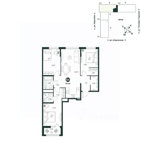 Продаётся 4-комнатная квартира в строящемся доме (Квартал Экологов (ГП-6)), срок сдачи: II-кв. 2026, общей площадью 84.04 кв.м., на 12 этаже. Новый жилой комплекс "Сердце Сибири" расположился в центре Тюмени в границах улиц 50 лет Октября-Пермякова-Харьковская. Проект комплекса включает 8 домов переменной этажности с многоуровневыми паркингами, большой бульвар для пеших прогулок и детский сад под окнами. Дома квартального типа образуют тихие приватные дворы, закрытые от машин и случайных прохожих.