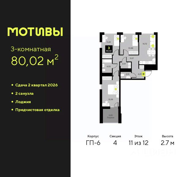 Квартира находится в Квартале мечтателей "Астро". Жилой комплекс от "Паритет Девелопмент" строится в Тюменской слободе на улице Сергея Джанбровского 19 к1. Характеристики квартиры: этаж - 12 количество комнат - 4 номер помещения - 369 площадь квартиры - 75,7 кв.м высота потолка - 2,72 м Это экологически чистая зона с видом на лес с разнообразием хвойных и лиственных деревьев. Вся инфраструктура в шаговой доступности - магазины, кафе, пункты выдачи. В планах - школа и детский сад. Закрытый двор без машин позволит жителям чувствовать себя в безопасности в кругу своих. В нем предусмотрены детские и спортивные площадки, зоны отдыха. Жилой комплекс "Астро" включает 6 секций высотой 9-15 этажей с подземным паркингом. В общей сложности в нем всего 384 квартиры. На 1 этажах появится коммерческая инфраструктура. Срок сдачи 1 кв. 2026 года. Планировки учитывают различные сценарии жизни, продуманы и функциональны. В квартирах выполнена стяжка пола с шумоизоляцией, выровнены стены, разводка отопления - горизонтальная - в полу, установлены счетчики с телеметрией. Эту планировку можно приобрести с готовой отделкой в темном или светлом цветовом решении, а также с кухонным гарнитуром, мебелью и декором. Большие окна наполняют квартиру естественным светом. Выделены зоны для работы и отдыха. Просторный санузел позволяет свободно разместить и ванну, и стиральную машину. Большая кухня имеет функциональную планировку, где комфортно собираться всей семьей или с друзьями. Здесь легко расположится кухонный гарнитур, стол со стульями и место для отдыха.