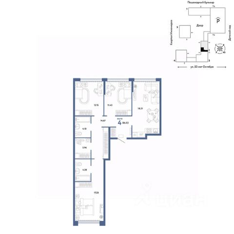 Квартира располагается в ГК "Чистые Пруды" от "Паритет девелопмент". Это флагманский проект компании в Тюмени. Расположение вдали от шумных улиц и оживленного центра создает ощущение жизни на природе и окружает тишиной и спокойствием. Есть вся необходимая социальная и коммерческая инфраструктура: магазины и сфера услуг на первых этажах. Школы, сады, поликлиника, парки в шаговой доступности. Квартал строится в районе Новой Лесобазы. Рядом выезд на объездную, что существенно экономит время. Поездка до центра города на автомобиле занимает 15-20 минут. Городские кварталы "Чистые Пруды" сформирован из домов переменной этажности и многоуровневых паркингов. Ввод 1 очереди строительства запланирован на II кв. 2028 года. Всё благоустройство квартала представлено двумя функциональными зонами: приватная внутри дворовая и общественная. Каждый закрытый двор имеет выход на единую променадную зону - бульвар. Концепция благоустройства основана на принципе модульности, что формирует основную идею приватности. Приватность проекта подчеркивает его особенный климат внутри. Модульное благоустройство позволит максимально эффективно использовать пространство двора и удовлетворить потребности различных категорий жителей. В квартирах базово выполнена улучшенная черновая отделка, которая включает в себя: выровненные стены, стяжка пола с шумоизоляцией, горизонтальная разводка отопления, установлены счетчики с телеметрией, окна с 5-камерным профилем и надежные входные двери. При желании можно добавить ремонт от застройщика и включить его в стоимость ипотеки, что позволит сэкономить на стройматериалах и переехать сразу после получения ключей. Характеристики квартиры: этаж - 14 количество комнат - 4 номер помещения - 269 площадь квартиры - 70,1 кв.мГармоничные пропорции и большие окна наполняют пространство светом, создавая уютную атмосферу. Умное зонирование позволяет удобно организовать как рабочую, так и жилую зоны, что особенно важно для современных жителей. Санузел спроектирован с учетом всех потребностей: здесь есть ванна и место для стиральной машины. Каждый метр квартиры используется с максимальной эффективностью, что делает эту планировку отличным выбором для тех, кто ценит комфорт и удобство.